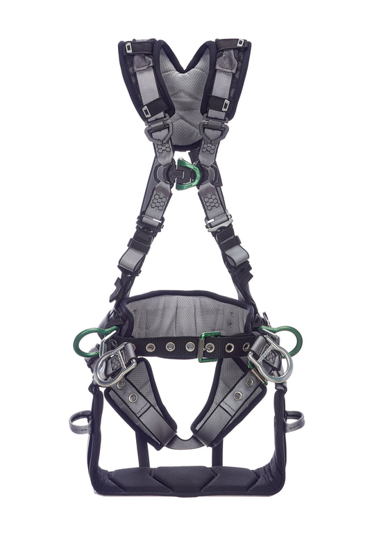 V-FIT Tower Harness, D-Rings on Front, Back and Hips, with Shoulder and Leg Padding