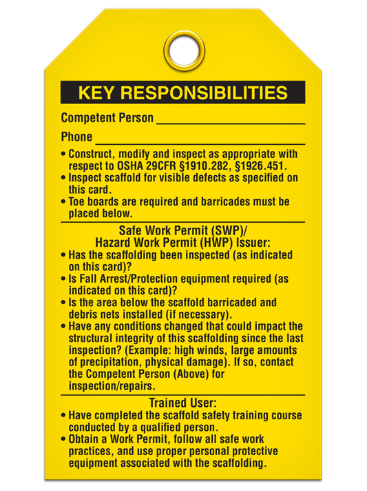 "Scaffold Inspection" - Scaffold Status Tag, Pack of 25