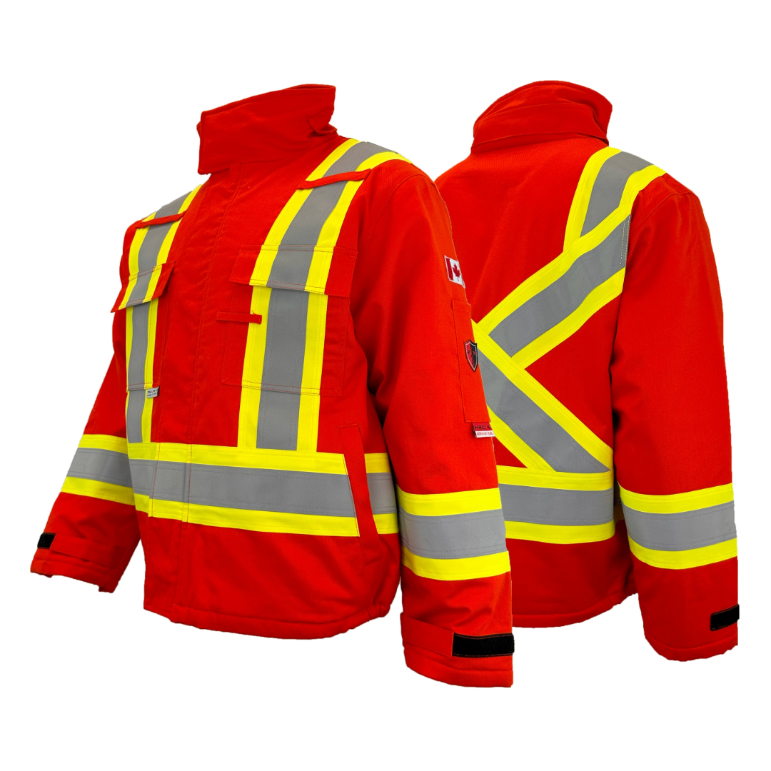 FR Winter Parka with 2" Hi-Vis Stripes, CAT 4, Navy