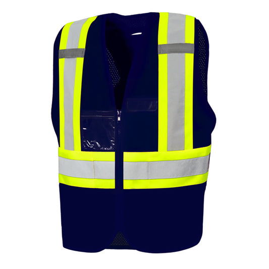 Solid Front/Mesh Back High Visibility Safety Vest with Zipper, 4" Reflective Tape, 8 Pockets