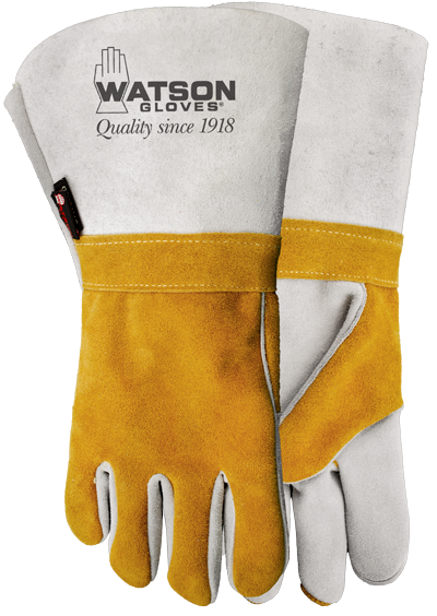 3M Thinsulate™ C100 lining, lightweight split cowhide palm, split cowhide back, gunn cut, wing thumb, 1.5" leather band seam protector, welted seams, stitched with Kevlar® thread, gauntlet style cuff with leather gore, made in Canada. 1034 unlined. 1034W 100% wool lined back. Size 10–13