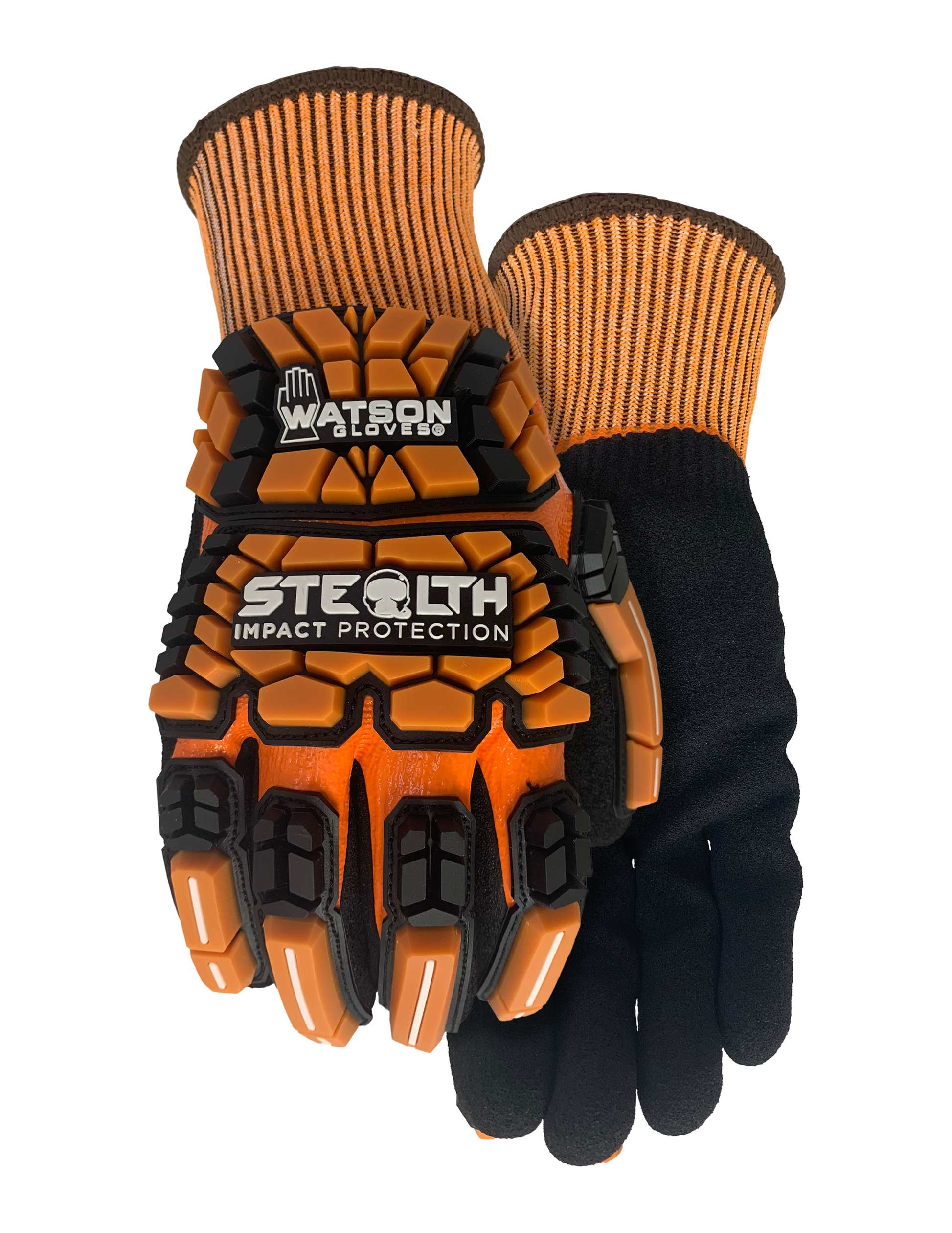 13gg HPPE/glass/steel/ WasteNot™ polyester seamless knit made from recycled post consumer PET bottles, first layer water resistant full dip flat nitrile and second layer sandy nitrile palm, rubber on back of hand, treated to bead water off which last up to 5 washes, snug-fitting knit wrist. Size XS–XXL. *1.5 - 500mL recycled plastic bottle is used to make one pair of gloves