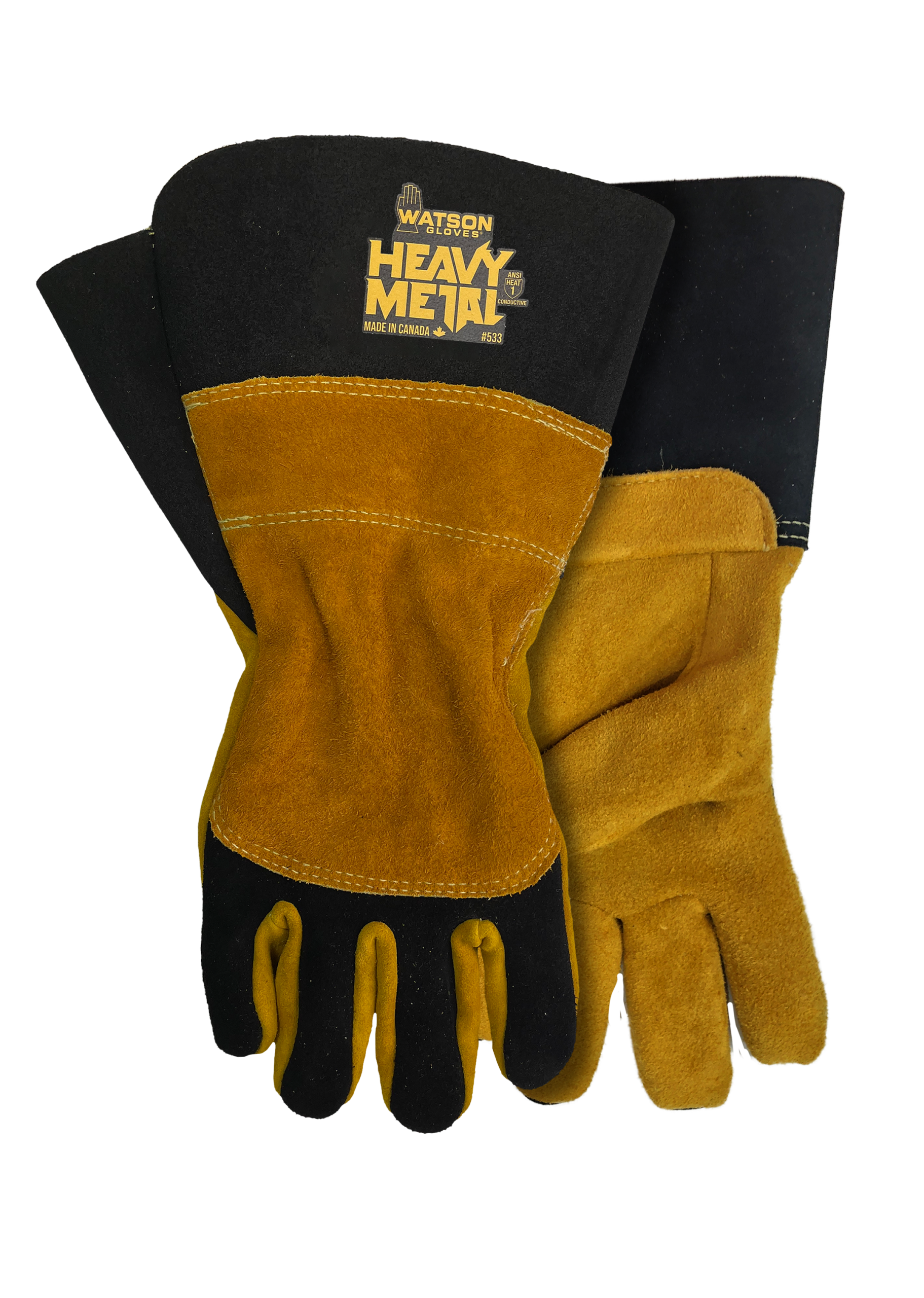 Durable elksplit leather back with full-grain reverse palm, stitched with Kevlar®, cotton fleece lined back of hand, left hand leather back patch and pulse protector, gauntlet style cuff with leather gore and snug-fitting shirred elastic wrist, proudly made in our local Burnaby, BC factory. 533CR Cutshield™ ANSI level A5. Size S–XXL