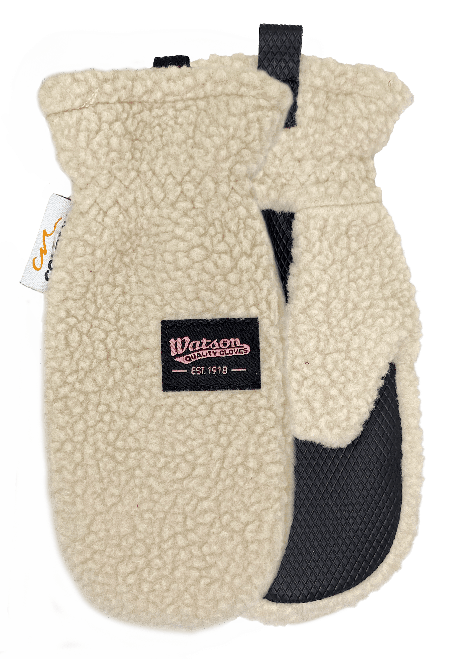 Heavy sherpa lining, premium full-grain cowhide leather, heavy duty rubber on back of hand and fingers, cotton drill back, shirred elastic wrist, slip-on style safety cuff