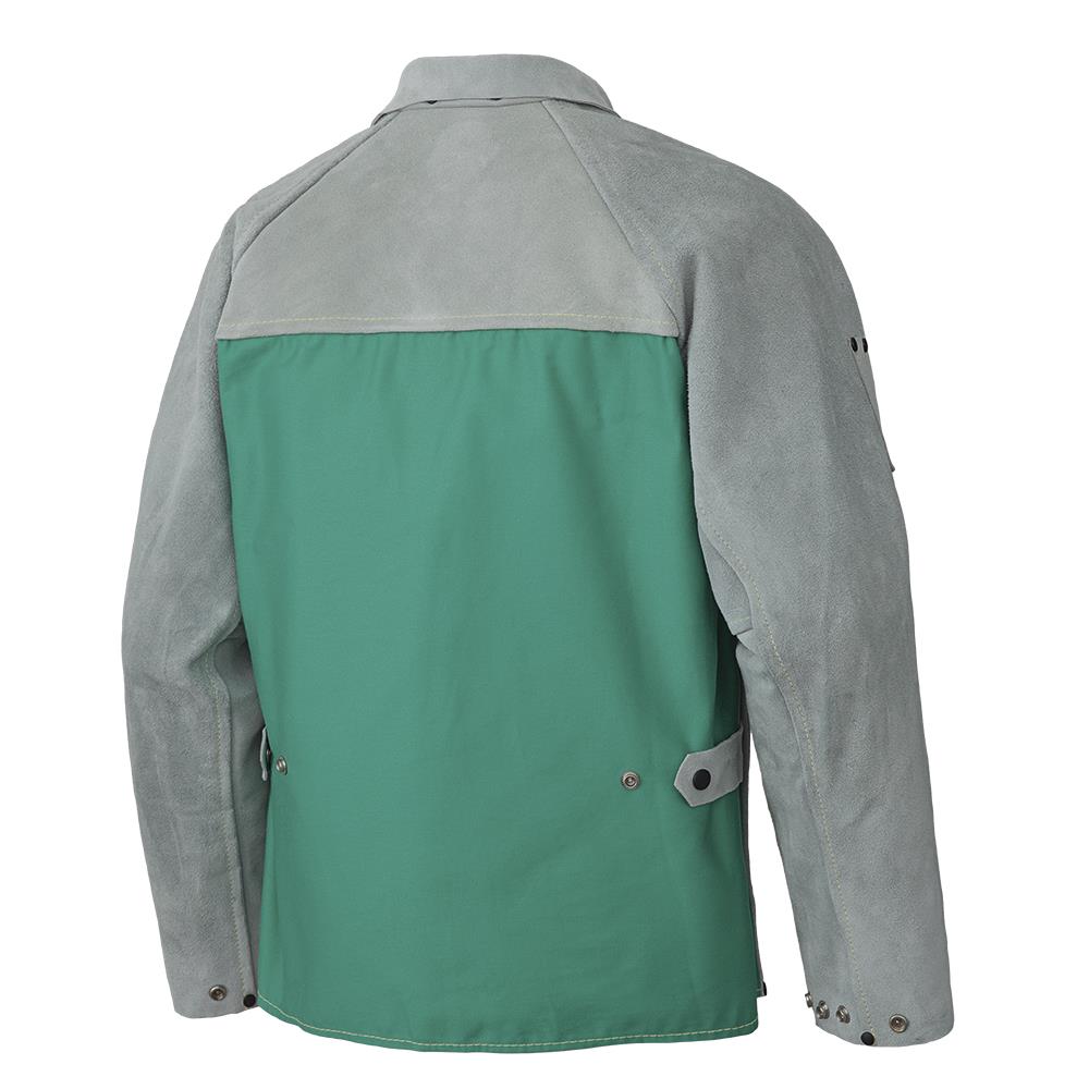 Fully adjustable leather welding jacket made with riveted stress points and reinforced snaps that delivers maximum protection from heavy sparks and spatter.